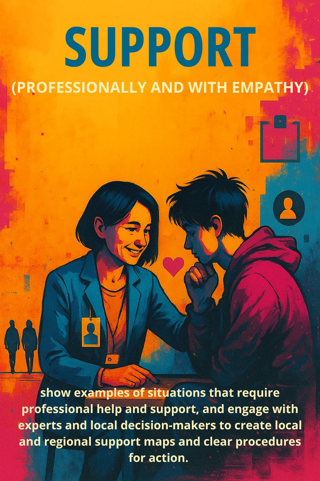 The project does not replace specialized help, but teaches how to become an attentive person who recognizes signals, conducts empathetic dialogue and refers clients to professionals.